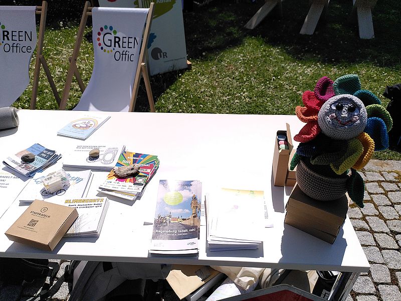 Am Fahrradaktionstag drehte sich alles rund um dein Fahrrad. Auf dem Wiesenbereich vor dem Vielberth-Gebäude der Universität Regensburg gab es im April 2025 ein buntes Programm mit Infoständen von Regensburger Akteur:innen, diversen Mitmachangeboten rund um das Thema Mobilität sowie gratis Fahrrad-Werkstatt und Bike-Fitting. Das ganze fand in Zusammenarbeit mit den Green Offices der UR und OTH Regensburg, der Techniker Krankenkasse statt.