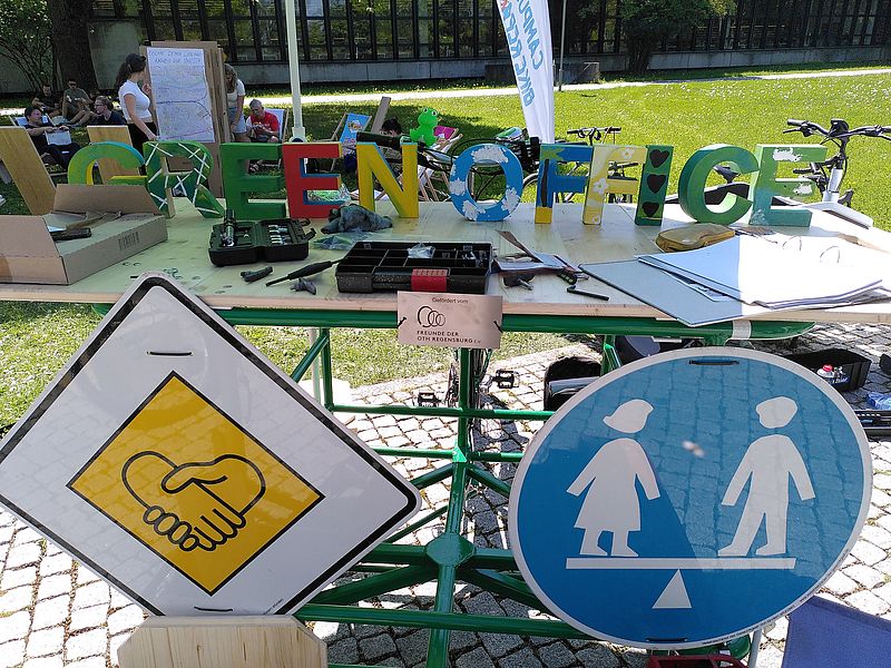 Für die Werkstatt hat sich der Grreen Spot der OTH Regensburg, der Re:parat Bus des Netzwerk Nachhaltigkeit sowie das Campus Bike Repair des studentischsen Gesundheitsmanagement zusammengetan und eure Räder geflickt.