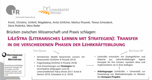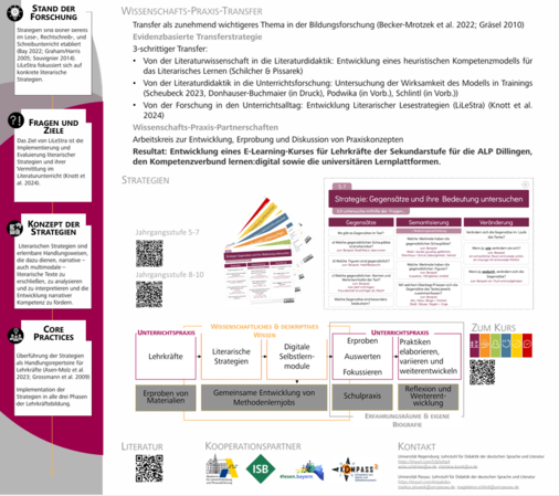 Das Projekt LiLeStra (Literarisches Lernen mit Strategien) ist ein Verbundprojekt der Universitäten Passau und Regensburg, der ALP Dillingen und dem ISB. In das Projekt fließen Ergebnisse einer engen Zusammenarbeit mit Lehrkräften von Realschulen ein, die die entwickelten Strategien bereits erprobt haben.