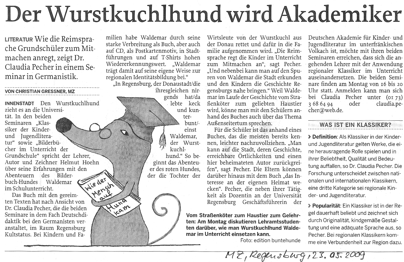 Artikel "Der Wurstkuchlhund wird Akademiker" in der Mittelbayerischen Zeitung, 23.5.2009