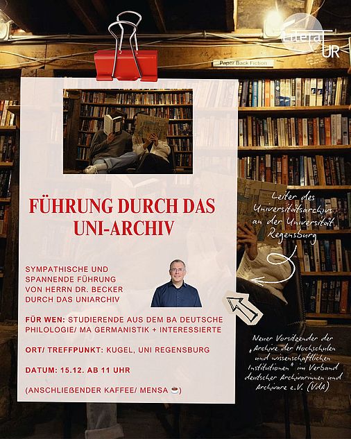 Führung durch das Uniarchiv von Herrn Dr. Andreas Becker am 15.12.2025 ab 11 Uhr, Treffpunkt Kugel mit anschließendem Austausch; Anmeldung bei tatjana.kuehnast@ur.de