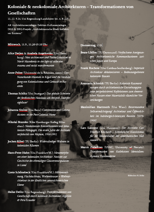 Beteiligte Institutionen: DFG-Projektes "Architektonische Modi kollektiver Existenz", Forschungsstelle Kultur- und Kollektivwissenschaft, AK Architektursoziologie (in den Sektionen Kultursoziologie sowie Stadt- und Regionalsoziologie der Deutschen Gesellschaft für Soziogie, DGS)