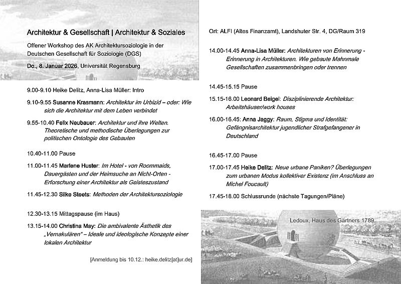 Veranstalter: Kooperation mit dem AK Architektursoziologie der Deutschen Gesellschaft für Soziologie (DGS)