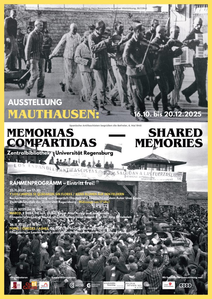 Vom 16.10. bis 20.12.2025 präsentiert das spanische Film- und Kulturfestival CinEscultura, das Zentrum Erinnerungskultur und das Forschungszentrum Spanien sowie weitere Partner in der Zentralbibliothek der Universität Regensburg eine Ausstellung über die spanischen Gefangenen im Konzentrationslager Mauthausen.
