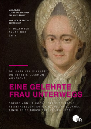 Gastvortrag von Dr. Patricia Viallet, Université Clermont Auvergne: "Eine gelehrte Frau unterwegs: Sophie von La Roche, erste deutsche Reisetagebuch-Autorin und ihr Journal einer Reise durch Frankreich, 1787"