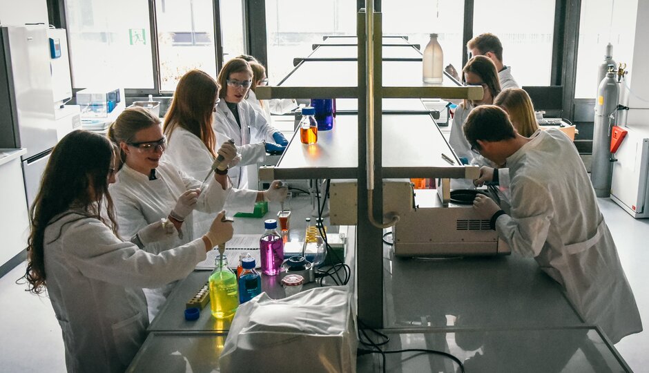 Praktika nehmen im Bachelorstudiengang Molekulare Medizin einen großen Stellenwert ein. Bereits im ersten Semester lernen Sie grundlegende Methoden der Molekularbiologie kennen und werden mit Laborarbeiten und Sicherheitsrichtlinien vertraut gemacht. In den folgenden Semestern ermöglichen Praktika in den Bereichen Zellbiologie, Biochemie, Physiologie und Mikrobiologie sowie das sechswöchige Laborpraktikum den Erwerb praktischer Kompetenzen und den Umgang mit modernen Forschungsmethoden.