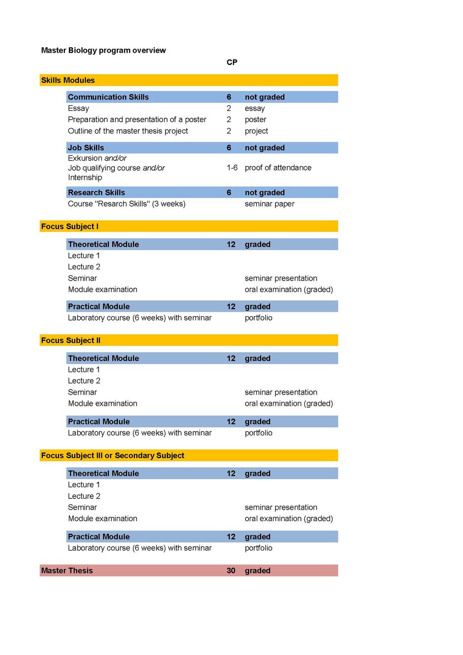 Der Masterstudiengang Biologie ist in Englisch und dient der Vertiefung der wissenschaftlichen Kenntnisse. Er ist stärker forschungsorientiert als der Bachelorstudiengang und hat einen hohen Anteil an Praktika im Labor .
