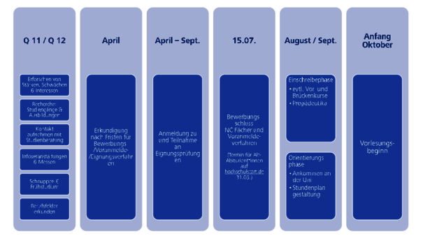 Unser Time Planner zeigt Ihnen die groben Schritte auf dem Weg ins Studium.