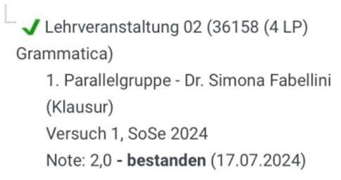 Ausnahme: Die hierauf befindliche UR-Lehrveranstaltung wurde mit "5,0 (Versäumnis)" verbucht. D.h. sollten Sie die UR-Leistung erbracht, jedoch nicht bestanden haben, ist die Wiederholung hierzu zwingend an der UR abzulegen und kann nicht durch eine Anerkennung jeglicher Art abgegolten werden - Verwenden Sie bitte für jeden Fachbereich einen eigenen Antrag, da dieser von der jeweiligen Fachvertretung geprüft und mit Stempel und Unterschrift versehen werden muss