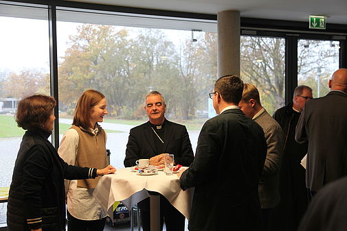 Den Schlussakt der Tagung bildete eine Podiumsdiskussion. Der Lehrstuhlinhaber für Bürgerliches Recht an der Universität Regensburg, Prof. Dr. Martin Löhnig, moderierte das Gespräch mit den drei Diskutanten, dem Ap. Nuntius Dr. Nikola Eterović, dem Leiter der Bayerischen Staatskanzlei und Staatsminister für Bundesangelegenheiten und Medien Dr. Florian Herrmann, MdL und dem Regensburger Bischof Dr. Rudolf Voderholzer.