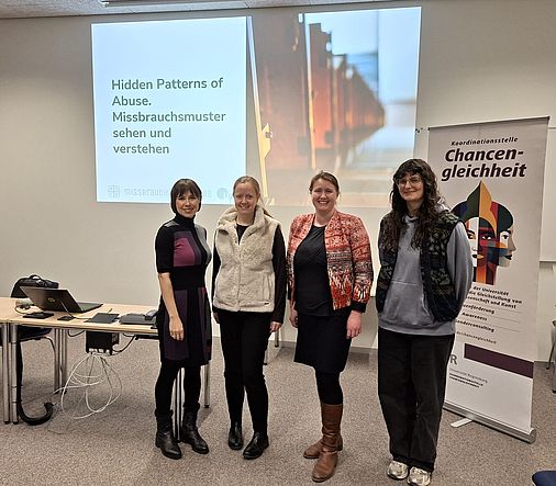 Dr. Judith König und Philippa Haase wurden anlässlich des Orange Day 2025 von der Servicestelle Gleichstellung und Vielfalt der OTH Regensburg sowie der Koordinationsstelle Chancengleichheit der Universität Regensburg eingeladen. Die Referentinnen gestalteten die Veranstaltung mit einem Impulsvortrag und einem anschließenden Workshop zum Thema „Hidden Patterns of Abuse. Missbrauchsmuster sehen und verstehen“, der sich an alle Interessierten, insbesondere jedoch an Studierende und Promovierende beider Hochschulen richtete.