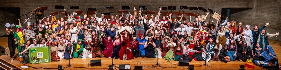 30 Jahre Jazznuts: Unter dem Motto „Von Jazz zu nuts“ feiert der Regensburger Pop-Chor die wahrscheinlich musikalischste Geburtstagsparty des Jahres. Für Stimmung sorgen die rund 100 Sänger*innen der Jazznuts im Audimax mit ihrem klangvollen A-cappella-Sound! Höhepunkt des Abends ist dabei eine Setlist, die es in sich hat und zum Schwelgen und Mitsingen einlädt: Musik aus verschiedenen Jahrzehnten und unterschiedlichsten Stilrichtungen, z. B. mit Hits von Queen, Taylor Swift, Elton John uvm.