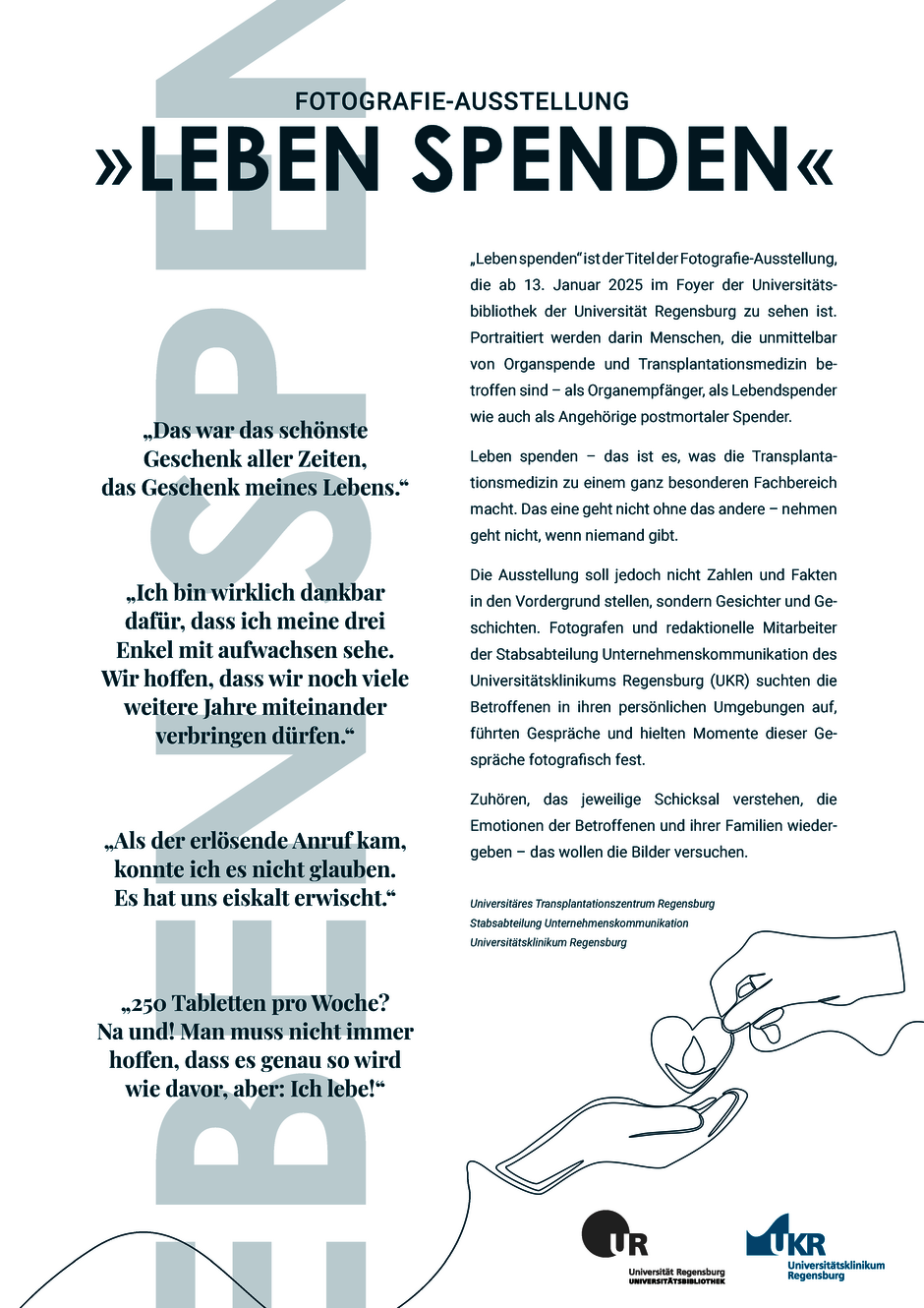 Eine Ausstellung des Universitären Transplantationszentrums Regensburg, Stabsabteilung Unternehmenskommunikation des Universitätsklinikums Regensburg.