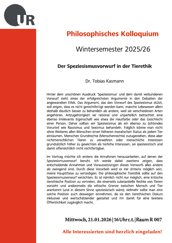 Veranstaltung: Philosophisches Kolloquium - Der Speziesismusvorwurf in der Tierethik