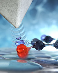 Weil Licht eine elektromagnetische Welle ist, kann seine oszillierende Trägerwelle als ultraschnelle Kraft wirken, wie das Team zeigte, schneller sogar als ein Schwingungszyklus des Lichtfeldes. „Wenn wir Lichtblitze auf die atomar scharfe Nadel des Mikroskops strahlen, können wir die belichtete Nadel als ultraschnelle, atomar scharfe 'Hand' verwenden und damit einzelne Atome des Moleküls anstoßen", erklärt Dominik Peller, der Erstautor der neuen Studie.