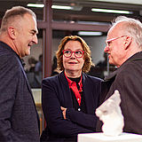 Als „Powerfrau“ bezeichnete Professorin Eigelsperger die Masterstudentin Lilly Peithner, was nicht nur zum Ausdruck kommt, wenn sie mit schweren Tonballen hantiert oder ihre Plastiken mithilfe eines Hammers modelliert. Kraft und Energie fließen auch in ihre künstlerische Arbeit ein und werden durch ihre Werke erfahrbar. „Lilly Peithner vertieft sich in Formen und Oberflächen und bezieht mit ihren Werken Stellung. Damit gibt sie uns Zündstoff für unser eigenes Denken. Die Ausstellung von Lilly Peithner strahlt inmitten der UR Power aus“, so Birgit Eigelsperger in ihrer Eröffnungsrede.