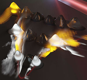Eine Kooperation der Arbeitsgruppe von Prof. Dr. Rupert Huber am Institut für Experimentelle und Angewandte Physik der Universität Regensburg mit den Gruppen von Prof. Dr. Stephan W. Koch von der Universität Marburg und Prof. Dr. Mackillo Kira von der University of Michigan, USA, entwickelte nun eine Methode, mit der die elektronische Struktur atomar dünner Materialien einfach und sprichwörtlich blitzschnell bestimmt werden kann. Die Idee des Experiments, das in Regensburg durchgeführt wurde, ist Elektronen, die zunächst unbeweglich im Festkörper gebunden sind, mit Hilfe eines kurzen Lichtblitzes in das sogenannte Leitungsband anzuregen, wo sie sich frei bewegen können. Ein zweiter, intensiver Lichtblitz beschleunigt sie dann über weite Bereiche dieses Leitungsbandes. Dabei folgt die Bewegung der Elektronen, wie bei der Abfahrt eines Skifahrers auf einer Buckelpiste, der Form des Leitungsbandes. Dies führt dazu, dass ein schwacher Lichtblitz erzeugt wird, der den Forschern Aufschluss über die Bewegung der Elektronen im Kristall und damit der zugrundeliegenden Bandstruktur liefert.