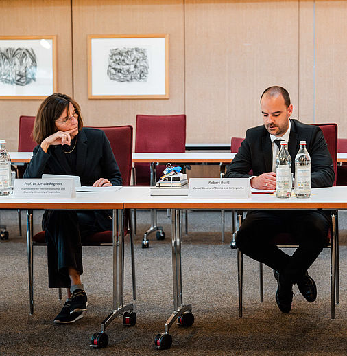 Die Universität Regensburg, die sich seit ihrer Gründung als Brücke zwischen Ost und West versteht, betreibt mehrere internationale Studiengänge und Forschungseinrichtungen mit Fokus auf Südosteuropa. Mit Einrichtungen aus Bosnien und Herzegowina besteht jedoch noch keine institutionalisierte Zusammenarbeit auf Universitätsebene. Allerdings pflegen einzelne Wissenschaftler der Universität Regensburg Kontakte zu Kolleginnen und Kollegen in Bosnien und Herzegowina. Davon konnten sich der Generalkonsul und die Konsulin in einer Gesprächsrunde ein genaueres Bild machen.