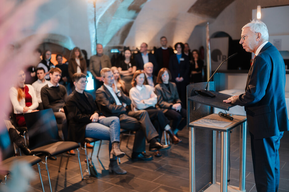 Begrüßt wurden sie anwesenden Gäste im Kaufmannsgewölbe im Haus der Begegnung von Universitätspräsident Prof. Dr. Udo Hebel. „Mit dieser erstmaligen Award Ceremony möchten wir den Preisträger*innen und ihren Sponsor*innen eine angemessene und vor allem individuelle Bühne für ihre herausragenden Leistungen und ihr Engagement bieten. Heute stehen Preisträgerinnen und Preisträger aus ganz unterschiedlichen Bereichen der Universität und aus ganz unterschiedlichen Stadien ihrer wissenschaftlichen Karriere im Mittelpunkt. Eines haben Sie aber alle gemeinsam: Sie haben sich diese Ehrung erarbeitet und dank Ihres Engagements verdient“, so Prof. Hebel zum Auftakt der Veranstaltung.