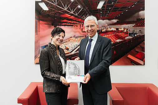 Foto: UR/Julia Dragan „Die Spitzenprofessur für Julie Casteigt ist ein herausragender Erfolg und trägt dazu bei, unsere Universität als hochattraktiven Forschungsstandort in den Netzwerken und Kooperationsstrukturen des internationalen Wissenschaftsaustauschs zu stärken“, freut sich Universitätspräsident Professor Dr. Udo Hebel.