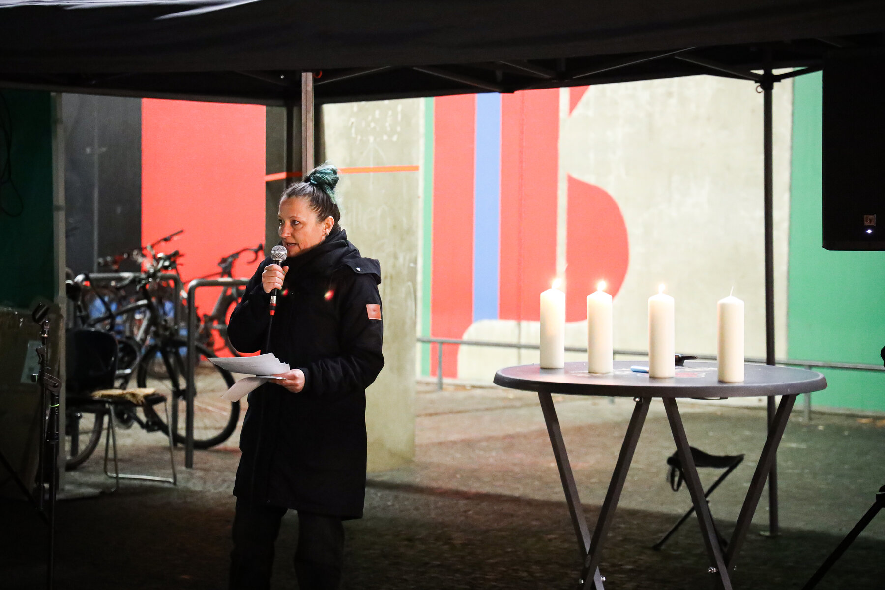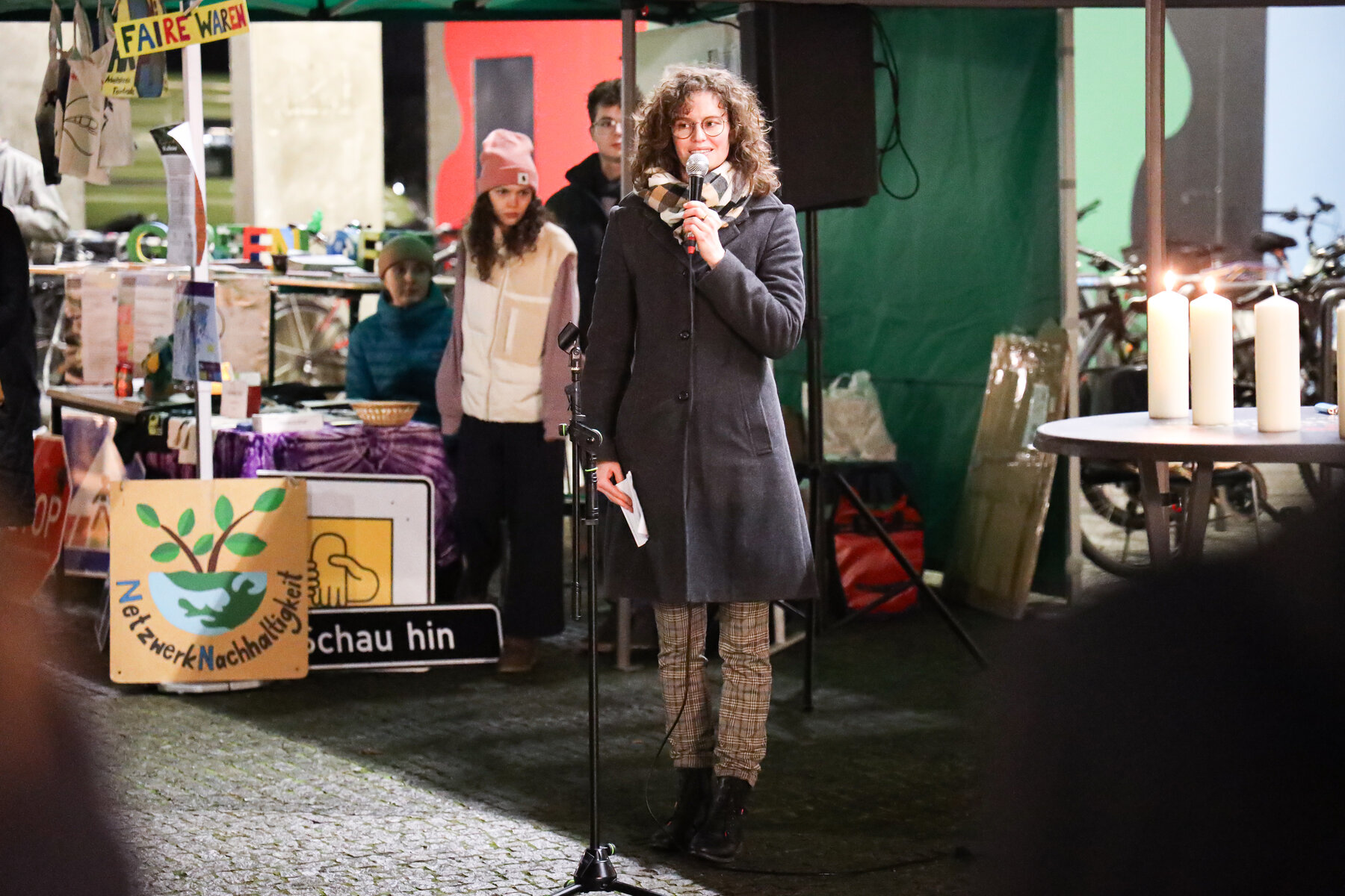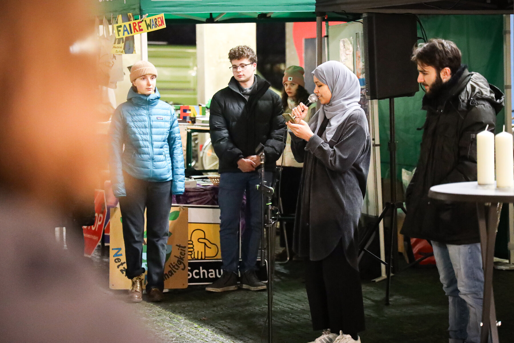 Zum Abschluss der Lichteraktion wurden alle Anwesenden dazu eingeladen, ein entzündetes Teelicht entgegenzunehmen – als Symbol des Weiterverschenkens von Hoffnung und Gemeinschaft. Musikalisch eingerahmt wurde die Lichteraktion von meditativen Klängen einer Handpan.