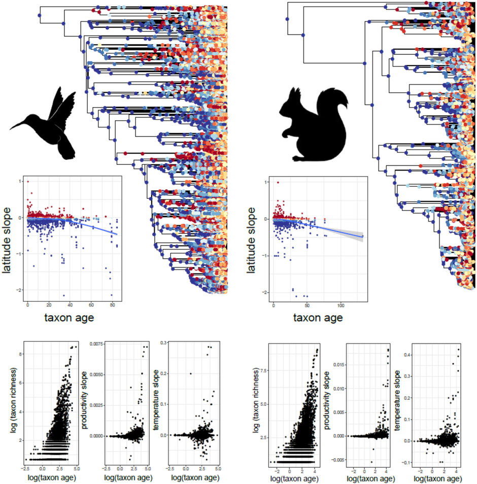 From the abstract: Species richness gradients are not universal, nor are they phylogenetic scale-invariant. Instead, they follow systematic trends across the phylogenetic hierarchy. Young, small clades often bear signatures of their region of origin and historical dispersal, whereas older, larger clades converge on similar gradients. Recognising the variation and the phylogenetic trends within it elucidates the formation of biodiversity patterns. We offer guidelines for choosing gradient measures, arguing that multiple metrics, combined with careful use of null models, are necessary for a nuanced understanding of how, and why, global biodiversity patterns diverge from the presumed universal gradients.