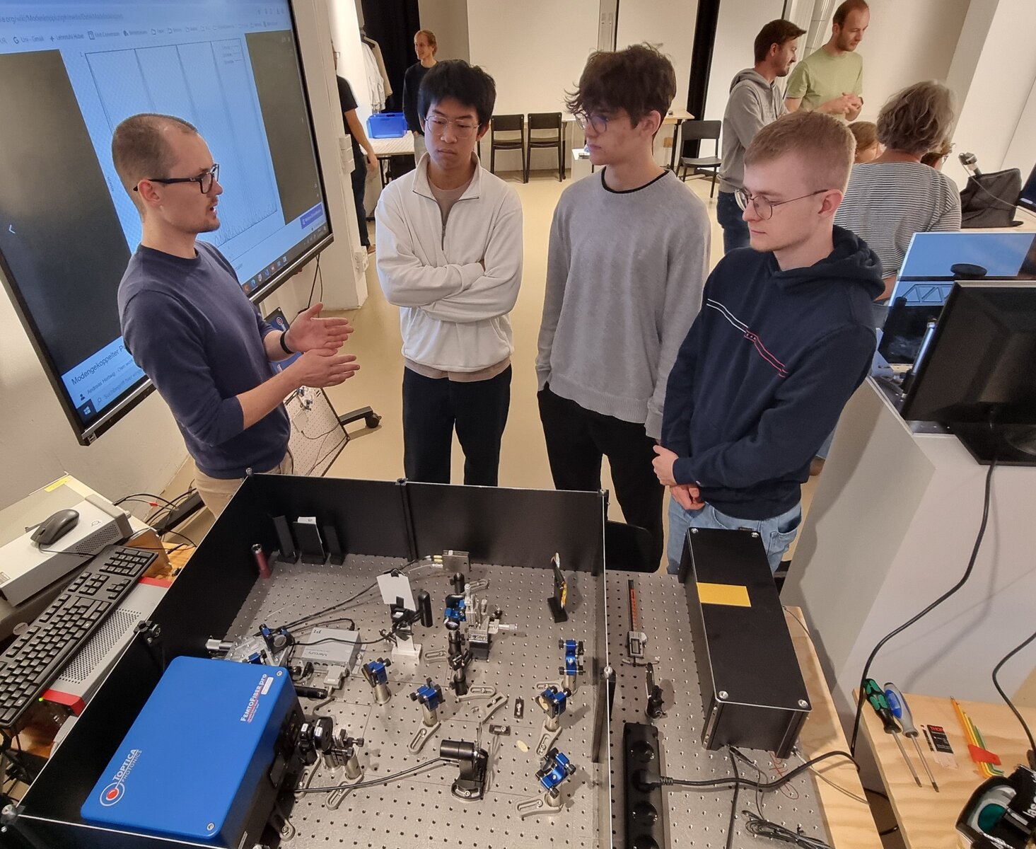 Andere Gruppen beschäftigten sich mit der Zeitauflösung schneller Prozesse: Mit einer Highspeed-Kamera filmten sie alltägliche, aber rasante Ereignisse wie das Platzen einer Wasserbombe – ein Vorgang, der in wenigen Millisekunden abläuft. Um die noch viel schnelleren Bewegungen von Atomen und Molekülen einzufangen, nutzten sie modernste Ultrakurzzeitlaser, um extrem kurze Lichtimpulse eigenständig zu messen. Ein Team widmete sich der Biolumineszenz, also dem Leuchten von Lebewesen.