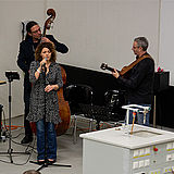 Im Anschluss an den Festvortrag fanden sich Gäste, Absolvent*innen und das Kollegium bei einem Empfang im Vorraum des Hörsaals H 36 zusammen. Musikalisch wurde der Tag vom Anne Schnell-Trio umrahmt.