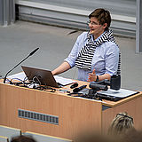 Die Laudatio auf den scheidenden Inhaber des Lehrstuhls für Mathematik V – Prof. Dr. Uwe Jannsen – hielt Clara Löh, die Dekanin der Fakultät für Mathematik. Darin stellte sie ein Theorem auf, das sie anschließend mühelos beweisen konnte: „Die Universität wird Uwe Jannsen sehr vermissen.“ Diese Aussage ließe sich für jeden, der einmal mit ihm Kontakt hatte, leicht nachvollziehen, erklärte Löh, denn ohne ihn sei es schwieriger als mit ihm. Die zweite Behauptung der Dekanin lautete: „Ohne ihn wären ganz viele, vielleicht alle, nicht hier.“ Für den Beweis dieses Satzes holte Clara Löh weiter aus und blickte zunächst ins Jahr 1980 zurück, als Uwe Jannsen als Assistent von Prof. Dr. Jürgen Neukirch das erste Mal an die Universität Regensburg gekommen war. Nach Stationen am Max Planck-Institut in Bonn und an der Universität zu Köln kehrte Jannsen1999 als Nachfolger von Professor Neukirch nach Regensburg zurück. Prof. Dr. Uwe Jannsen gestaltete in den 2000er Jahren den Generationenwechsel an der Fakultät für Mathematik mit, arbeitete in zahlreichen Berufungskommissionen und bei vielen Forschungsanträgen mit. „Und dann ist das Geld da“, so Dekanin Löh weiter, „dann muss natürlich geforscht werden und hier hat Uwe Jannsen viel geleistet mit seinen herausragenden Arbeiten in der algebraischen Zahlentheorie und arithmetischen Geometrie“. Seine Vorlesungen seien bei den Studierenden sehr beliebt gewesen – und auch in der akademischen Selbstverwaltung war Jannsen sowohl als Dekan als auch als langjähriger Senatsvorsitzender stark beteiligt. „Viele der Kollegen aus der Mathematik wären jetzt nicht hier, wenn Uwe nicht so hart dafür gearbeitet hätte und auch wir alle in diesem Hörsaal wären jetzt nicht hier – denn die Initiative für den ‚Tag der Mathematik‘, wie er damals noch hieß, ging auch auf ihn zurück“, schloss Professorin Löh ihre Beweisführung ab.