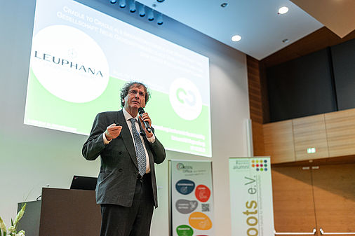 Erster Redner der Reihe ist Professor Dr. Michael Braungart, Unternehmer, Umweltforscher, Berater, Chemiker und Verfahrenstechniker an der Leuphana Universität Lüneburg. Braungart spricht über „Cradle to Cradle als Innovationschance für Wirtschaft und Gesellschaft - Neue Geschäftsmodelle als Voraussetzung für eine echte Kreislaufwirtschaft“. „Mit allem, was wir heute hören, werden wir mit Nachdenklichkeit herausgehen, und das ist gut, weil sich daraus neue Perspektiven ergeben“, sagt Universitätspräsident Hebel zu Beginn des Vortrags.
