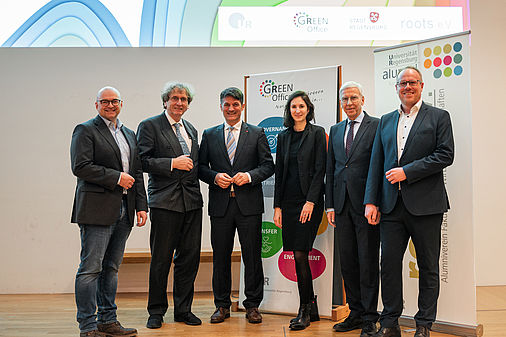 Für die Stadt Regensburg sprach Professor Dr. Georg Stephan Barfuß, Leiter des städtischen Referates für Wirtschaft, Wissenschaft und Finanzen; ergänzt wurde dies durch inhaltliche Hinweise zu UR-Maßnahmen in Sachen Nachhaltigkeit und zu Aktivitäten des Green Office vom Beauftragten der Universitätsleitung für Nachhaltigkeit, Professor Dr. Andreas Roider.