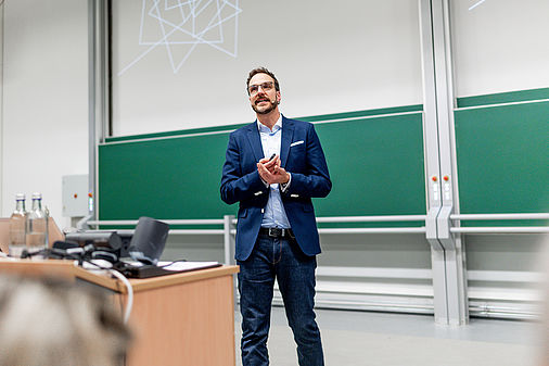 Im Anschluss übergaben die beiden Dekane den „Preis für gute Lehre“ und den „Preis für die beste Übung“ in ihrer jeweiligen Fakultät. Bei den Physikern ging der Preis, wie bereits im Vorjahr, an Prof. Dr. Rupert Huber für die Vorlesung „Light Matter Interaction“, mit dem Preis für die beste Übung wurde Thomas Sterr für seine „Übung zu Mathematische Methoden“ ausgezeichnet. In der Mathematik erhielt Prof. Dr. Stefan Friedl die Auszeichnung für seine Vorlesung „AlgebraicTopology – Cohomology“. Den Preis für die beste Übung teilen sich in diesem Jahr Fabian Heid, „Lineare Algebra und analyt. Geometrie“, sowie Johannes Zander „Numerik I“.