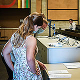Das birgt gerade Herausforderungen für den Prüfungsbetrieb. So gelten während Klausuren weiterhin die Regeln zu Abstand und Mund-Nasen-Schutz; ergänzend wird auch im Wartebereich Abstand gehalten, bei Betreten und Verlassen des Prüfungsraums Mund-Nasen-Schutz getragen, ebenso, falls man den Raum zwischendurch mal verlassen muss. Nur wer fix auf dem Platz sitzt, kann den Mund-Nasen-Schutz ablegen. Die Raumverwaltung und die Prüfungsaufsichten helfen dabei, dass auch in den Prüfungsräumen, die regelmäßig desinfiziert werden, genügend Abstand zwischen den Sitzplätzen ist.