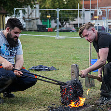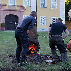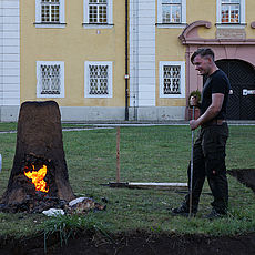 Bereits im März 2020 begann im Kultur-Schloss Theuern (externer Link, öffnet neues Fenster) nahe Amberg ein Experiment zur historischen Eisenerzeugung unter der Aufsicht von Dr. Martin Schreiner, Leiter des Bergbau- und Industriemuseums Ostbayern, und in Kooperation mit dem Lehrstuhl für Alte Geschichte der Universität Regensburg.