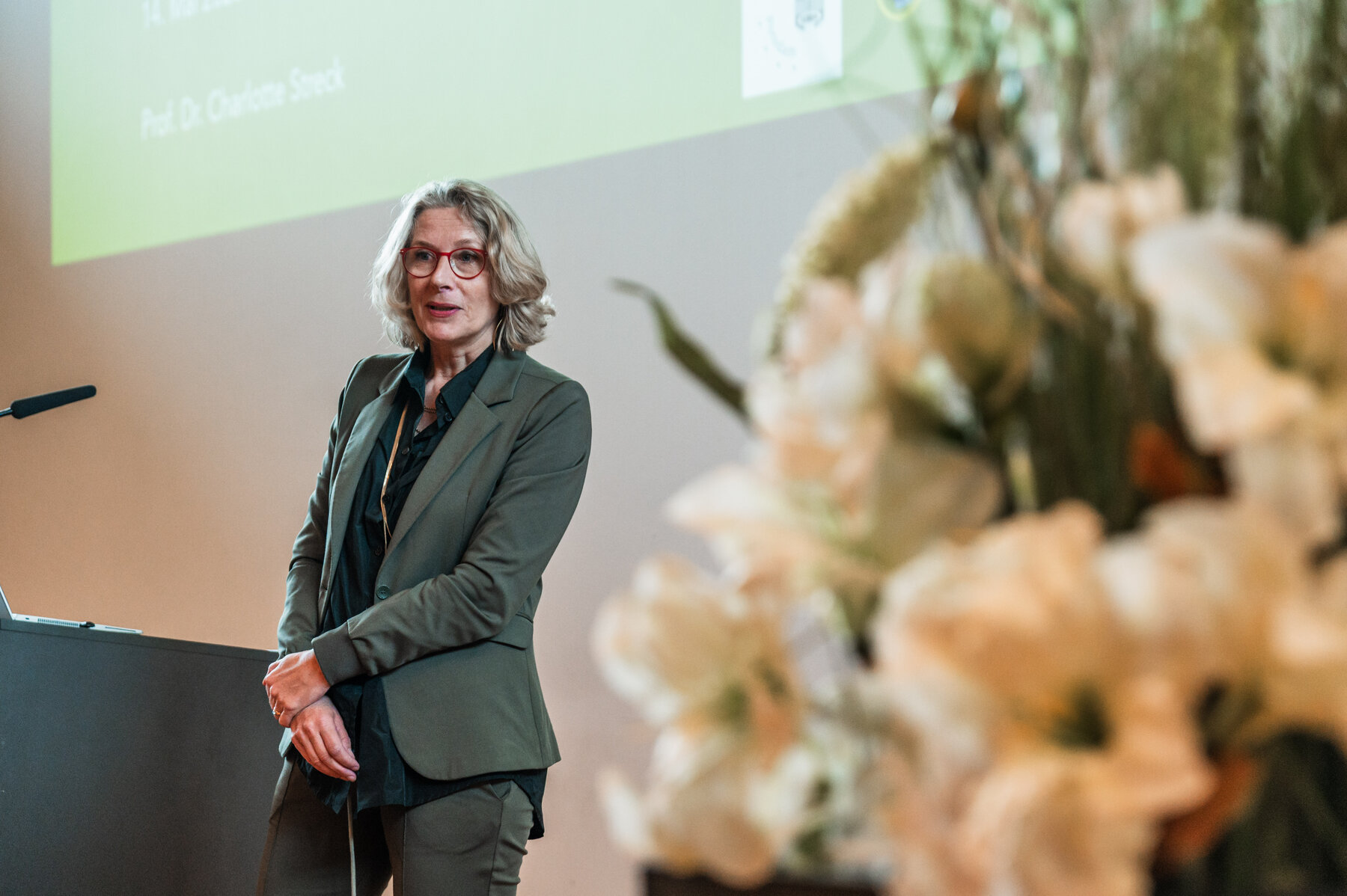 Im Anschluss an die Eröffnung des Studiengangs sprach Professorin Dr. Charlotte Streck, Gründerin und Geschäftsführerin von Climate Focus, in ihrem Festvortrag zu internationalen Synergien zwischen Klima- und Artenschutz. Strecks Vortrag bildete zugleich die vierte Regensburg Lecture in Sustainability, eine universitätsweite Reihe mit Persönlichkeiten aus Wissenschaft, Gesellschaft, Politik und Wirtschaft zu Themen der ökologischen, sozialen und ökonomischen Nachhaltigkeit. Die Veranstaltungsreihe wird vom Green Office der UR in Kooperation mit dem Alumni-Verein roots e.V. organisiert. Einen Beitrag zum Vortrag finden Sie im UR ScienceBlog (externer Link, öffnet neues Fenster).