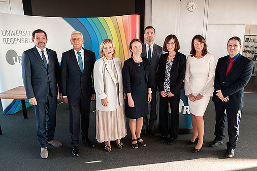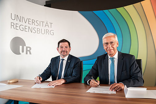 Nachdem im Juni die Strategische Partnerschaft mit der Universität Clermont-Auvergne aus Regensburgs Partnerstadt Clermont-Ferrand geschlossen wurden, fand am Donnerstag, den 14.09.2023, die feierliche Zeremonie zur Unterzeichnung einer weiteren Strategischen Partnerschaft statt. Die Unterzeichnung des Abkommens fand im Rahmen eines Delegationsbesuch von fünf Professor*innen der Masaryk-Universität statt. Gemeinsam mit seinem Amtskollegen Rektor Prof. Dr. Martin Bareš von der Masaryk-Universität Brno (MUNI) unterzeichnete Universitätspräsident Prof. Dr. Udo Hebel in Anwesenheit der Generalkonsulin der Tschechischen Republik in München, Dr. Ivana Červenková, das Abkommen, das eine Intensivierung und Ausweitung der seit 1989 existierenden Partnerschaft zwischen der Universität Regensburg und Tschechiens zweitgrößter Universität vorsieht. So bestehen bereits enge Forschungskooperationen insbesondere in der Slavistik, Chemie, Germanistik und Amerikanistik; weitere Kooperationen z.B. im Bereich der Informatik und Data Science wurden im Rahme des Delegationsbesuchs in dieser Woche besprochen. Die lebendige Verbindung beider Universitäten zeigt sich auch in der Mobilität: So zählt Brno nicht nur zu den wichtigsten Heimatuniversitäten der internationalen Austauschstudierenden an der UR; beide Universitäten sind jeweils auch besonders stark nachgefragte wechselseitige Ziele für Forschungs- und Lehraufenthalte.
