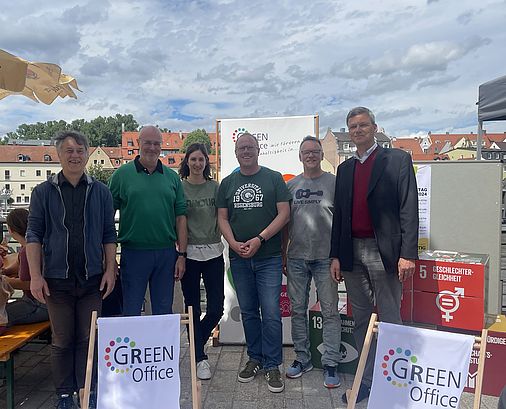 Unter dem Motto „Campus der Zukunft”, bot auch die Campuswiese zwischen Universität Regensburg und OTH Regensburg ein buntes Programm aus Workshops und Mitmachangeboten an rund 20 Ständen. Highlights des Campustages innerhalb der Nachhaltigkeitswoche waren unter anderem eine Führung über den Campus durch den Kanzler der UR, Dr. Christian Blomeyer und im Anschluss durch den Botanischen Garten durch dessen technische Leiterin Lena Fraundorfer. Im Rahmen eines Maßnahmenworkshops konnten Interessierte mit der Klimaschutzmanagerin der UR, Katrin Auernhammer, über Maßnahmen in den ausgewählten Handlungsfelder für das Klimaschutzkonzept diskutieren. Ob Infos zu Themen wie Arten- und Klimaschutz, Recycling oder Gleichstellung sowie Pflanzaktion oder Workshops zu aktiver Mobilität und Rückengesundheit - für jeden war etwas dabei, um auf begeisternde Weise mit dem Thema Nachhaltigkeit in Berührung zu kommen. Für das leibliche Wohl wurde durch zahlreiche vegane und vegetarische Essenstände, wie die leckeren Soja-Steaks des Netzwerks Nachhaltigkeit und z. B. vegane Waffeln der BLLV- und der UNICEF-Hochschulgruppe gesorgt.