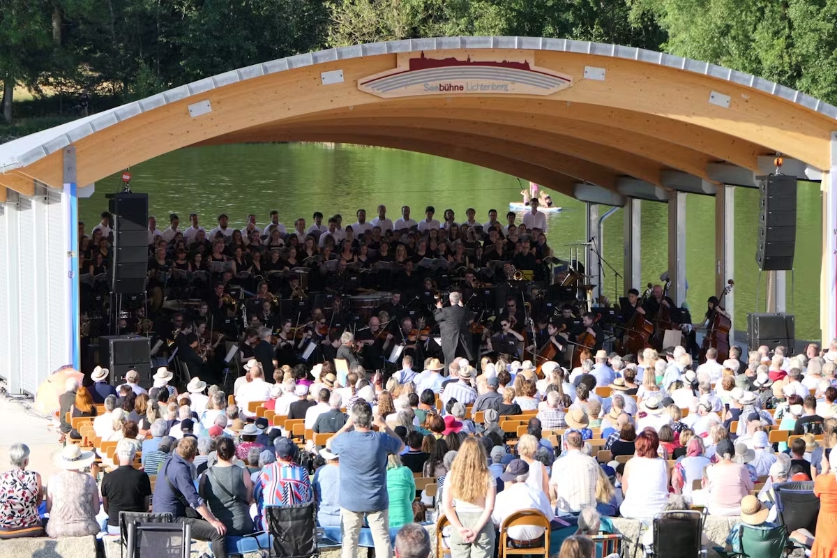 Am 29. Juni war der Universitätschor Regensburg auf Einladung der Stadt Lichtenberg und ihres Bürgermeisters Kristan von Waldenfels (MdL) bei der feierlichen Eröffnung der neuen Seebühne im oberfränkischen Lichtenberg zu Gast. Gemeinsam mit den Hofer Symphonikern präsentierte der Chor unter Leitung von Universitätsmusikdirektor Arn Goerke Carl Orffs Carmina Burana. Solistisch wirkten Nayun Lea Kim (Sopran), Stephan Schlögl (Tenor) und Peter Schöne (Bariton) mit.