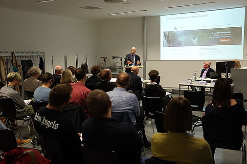 Der Diskussion ging ein Impulsvortrag des Sondergesandten der Bundesregierung für die Länder des westlichen Balkans und Präsidenten der Südosteuropa-Gesellschaft, Manuel Sarrazin, voraus. Universitätspräsident Professor Dr. Udo Hebel beschrieb das Projekt zu Beginn der Veranstaltung als Verdichtung der jahrelangen strategischen Ausrichtung der Universität Regensburg in Sachen Ost- und Südosteuropaforschung. Der Erfolg des Projektantrages, so der Universitätspräsident, spiegle die Wahrnehmung ausgezeichneter Forschung am Standort Regensburg, mit dem Leibniz-Institut für Ost- und Südosteuropaforschung (IOS) und dem Leibniz-WissenschaftsCampus, einer gemeinsamen Einrichtung von IOS und Universität Regensburg.