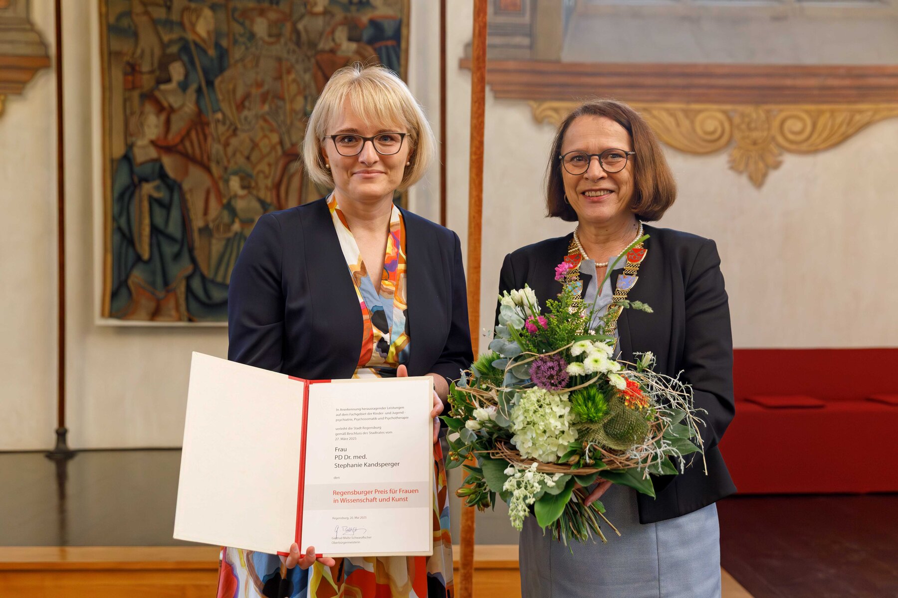 Die Stadt Regensburg hat auch in diesem Jahr zwei herausragende Wissenschaftlerinnen mit dem Regensburger Preis für Frauen in Wissenschaft und Kunst gewürdigt. Der Preis wird alle zwei Jahre für exzellente wissenschaftliche und künstlerische Leistungen verliehen und soll Frauen gezielt auf dem Weg zu einer Professur fördern.