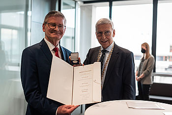 Prof. Dr. Udo Hebel, Präsident der Universität Regensburg hat am Montagmittag Personen, die sich in besonderem Maße um die Universität Regensburg verdient gemacht haben, ausgezeichnet. Die feierliche Verleihung der Ehrennadel der UR, der Universitätsmedaille „Bene Merenti“, sowie des Ehrensenatoren-Titels konnte in den zurückliegenden beiden Jahren pandemiebedingt nicht stattfinden, weshalb es sich jetzt um die Ehrungen für die Jahre 2020 und 2021 handelte.