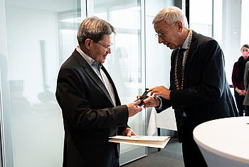In den 48 Jahren seiner Tätigkeit in der Raum- und Grundverwaltung hat sich Herr Schmid mit Tatkraft, Einsatzfreude und Gestaltungswillen für den reibungslosen Ablauf des Universitätsbetriebes engagiert. Dabei war er nicht nur ein fester Bestandteil unserer Universitätsgemeinschaft, sondern ein über den gesamten Campus hinweg hochgeschätzter Kollege, weshalb die Universität Regensburg seinen jahrelangen Einsatz in besonderer Weise auszeichnen möchte.