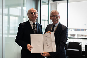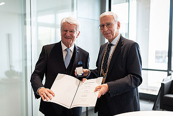 Bereits seit 2000 hat Herr Binder seine externe Expertise als Mitglied des Kuratoriums der Universität Regensburg eingebracht. Seit 2013 bis zum 30.09.2021 war er Mitglied des Universitätsrats und seit Mai 2016 der Vorsitzende dieses Gremiums. Durch seine wertvollen Beiträge und die tatkräftige Begleitung von wichtigen Zukunftsprojekten unserer Universität, wie zum Beispiel dem RCI (Regensburg Centrum für Interventionelle Immunologie) und dem Aufbau der FIDS (= Fakultät für Informatik und Data Science der UR), fungierte er dabei weit über die im Bayerischen Hochschulgesetz verankerten Aufgaben hinaus als wichtiger und wertvoller Impulsgeber und hat damit die Entwicklung der Universität Regensburg in den vergangenen Jahren auf besondere Weise mitgeprägt. Aufgrund seines sehr hohen und vielfältige Engagements möchte die UR ihre Dankbarkeit und Wertschätzung deshalb mit der Verleihung des Titels „Ehrensenator“ zum Ausdruck bringen.