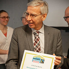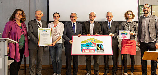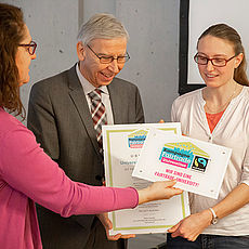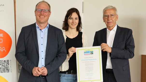 Den Fairen Handel fördern und in den universitären Alltag integrieren – das ist das erklärte Ziel von Fairtrade-Universities. Die Universität Regensburg wurde jetzt vom Verein TransFair e. V. zur 30. Fairtrade-University in Deutschland ernannt. Auf Initiative des studentischen Arbeitskreises Unifair und unterstützt durch die Universitätsleitung sowie durch das Studentenwerk Niederbayern/Oberpfalz hatte sich die Universität Regensburg im Sommer letzten Jahres erfolgreich für den Titel beworben. „Mit der Ernennung zur Fairtrade-University stellt sich die Universität Regensburg ihrer gesellschaftlichen Verantwortung auch in diesem Bereich und macht einen weiteren Schritt, um den Nachhaltigkeitsgedanken auf dem Campus zu verankern. Gerade für die Universität Regensburg, die sich als internationale Institution versteht, spielt Gerechtigkeit im globalen Sinn eine gewichtige Rolle“, erklärt Prof. Dr. Udo Hebel, Präsident der Universität Regensburg.