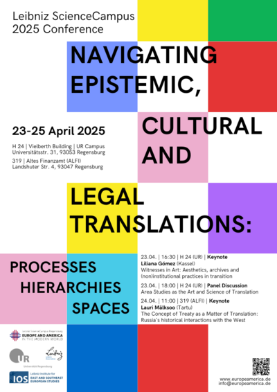 Wie geht man mit der Interpretation und Anpassung von Wissen, Kultur und rechtlichen Konzepten über verschiedene Sprachen, Gesellschaften oder Systeme hinweg um? Damit beschäftigte sich vom 23. bis 25. April 2025 die internationale Konferenz „Navigating Epistemic, Cultural, and Legal Translations: Processes, Hierarchies, Spaces“ des Regensburger Leibniz-WissenschaftsCampus (LWC) „Europa und Amerika in der modernen Welt“, einer gemeinsamen Plattform der Universität Regensburg (UR) und des Regensburger Leibniz-Instituts für Ost- und Südosteuropaforschung (IOS).