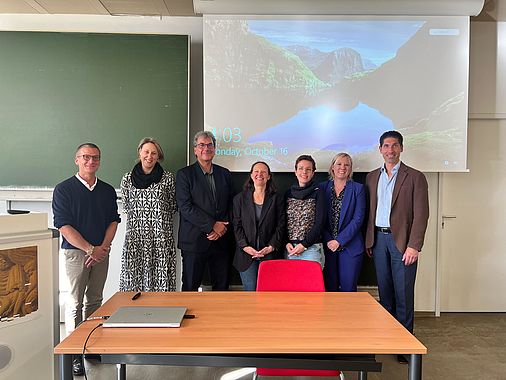 Am Montag, den 16. Oktober 2023, besuchten der Leiter des Forschungsreferats der Bayerischen Akademie der Wissenschaften (BAdW) und stellvertretender Generalsekretär der BAdW, RR Dr. Johannes Bernwieser gemeinsam mit Dr. Benjamin Schönfeld, Koordinator des Jungen Kollegs der BAdW, und Stefanie Nowak, persönliche Referentin des Präsidenten der BAdW, auf Einladung von Frau Prof.in Dr. Maria Selig, Dekanin der Fakultät für Sprach-, Literatur- und Kulturwissenschaften und selbst Mitglied der BAdW, und Frau Prof.in Dr. Miriam Banas, Stellvertretende Beauftragte der UR für die Gleichstellung von Frauen in Wissenschaft und Kunst die Universität Regensburg.
