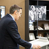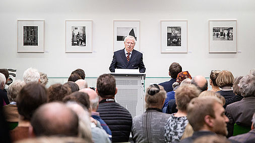 Universitätsbibliotheksdirektor André Schüller-Zwierlein nannte bei der Vernissage am 21. Februar 2020 die Ausstellung einen „Einblick in das sammlerische Lebenswerk“ von Hans-Peter Riese. Denn neben Kunstwerken und Literatur über die Kunst, war Riese auch ein „Sammler von Freundschaften“, so Schüller-Zwierlein. Diese Freundschaften sind ein zentrales Element der Ausstellung in der Universitätsbibliothek. Sie präsentiert Fotos mit Riese und seinen Freunden sowie Werke von befreundeten Künster*innen. Für Riese ist das Sammeln „keine entfremdende Tätigkeit“. Ihn faszinierten vielmehr zuerst die Persönlichkeiten der Künstler*innen und dann kam der Gedanke „von dieser Persönlichkeit möchte ich ein Kunstwerk haben“. Was Freundschaft für Riese bedeutet wird nicht zuletzt deutlich durch die zahlreichen Freunde und seine Familie, die zur Ausstellungseröffnung aus Tschechien, der Schweiz und ganz Deutschland anreisten.