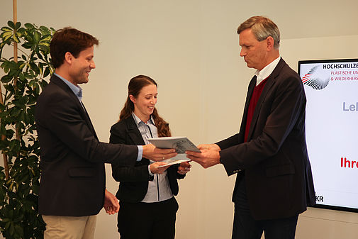Der Preis für die beste Innovation in einer Lehrveranstaltung ging an ein Team aus unterschiedlichen Fachrichtungen unter der Leitung von Prof. Dr. Silvan Klein, Leiter der Abteilung für Plastische, Hand- und Wiederherstellungschirurgie des Universitätsklinikums Regensburg (UKR), für die Einführung einer Smartphone-basierten mikrochirurgischen Ausbildung im Routinelehrbetrieb der Humanmedizin. Die weiteren ausgezeichneten Teammitglieder: Kerstin Steer, Prof. Dr. Alexandra Anker, Andreas Eigenberger, Dr. Andreas Siegmund, Dr. Stephan Giglberger, Prof. Dr. Thomas Schratzenstaller, Jasmin Lenhard, Prof. Dr. Lukas Prantl und Dr. Marc Rüwe.