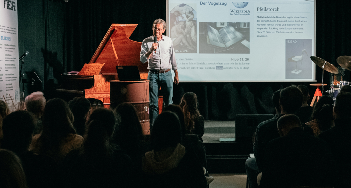 Im Anschluss an Dr. Fornwagner ergriff Prof. Dr. John Lupton das Mikrofon und erklärte den faszinierten Zuhörern in seinem Vortrag „Was uns der OLED-Fernseher über den Vogelzug verrät", den Zusammenhang zwischen den sogenannten organischen Leuchtioden (OLED) und dem Orientierungssinn von Zugvögeln.