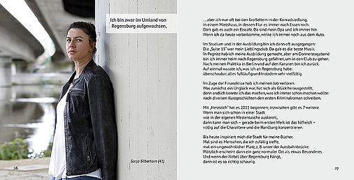 Diese Fragen haben Studierende der Vergleichenden Kulturwissenschaft der Universität Regensburg beschäftigt. Mit Dr. Esther Gajek und der Ausstellungsgestalterin Carola Grüninger-Schmitz wurden facettenreiche Antworten gefunden. In Zusammenarbeit mit dem Amt für Archiv und Denkmalpflege, der „Zeitzeugenbörse“ des Seniorenamtes, der Bilddokumentation der Stadt und den Museen der Stadt ist schließlich eine Ausstellung entstanden, die Einblicke gibt. Es waren nicht die VIPs, die Berühmtheiten, schon oft befragt, sondern „normale“ Menschen, die kaum bekannt sind: ein Student, eine Kioskbetreiberin, ein Musiker, ein Geflüchteter, eine Stadtführerin, eine Arbeitsmigrantin, ein Schüler, eine Autorin, ein Krankenpfleger, eine Angestellte und viele mehr. Der Fotograf Peter Ferstl hat diese „normalen“ Regensburgerinnen und Regensburger eindrucksvoll an ihren Lieblingsorten in der Stadt in Szene gesetzt. Diese fotografischen Porträts finden ihre Entsprechung in den jeweiligen Begleittexten, die aus Interviews mit den „Zeitzeugen“ erstellt wurden.